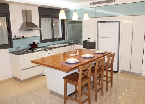 תחילה בחרנו להחליף את הגל האדום שהשתלט על המטבח לתכלת רגוע יותר, גילוי נאות: הנטייה שלי הייתה להחליף את הגל ללבן אבל תמי התעקשה על משטח בצבע, נפגשנו באמצע והתפשרנו על תכלת, תודו שהצליח לה בגדול. הקרדיט על הצבע לתמי !