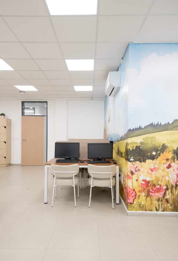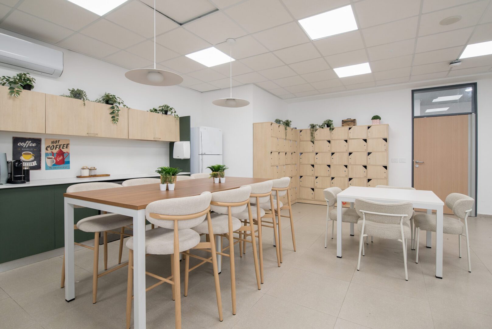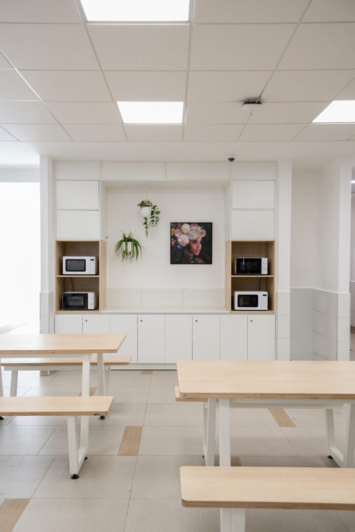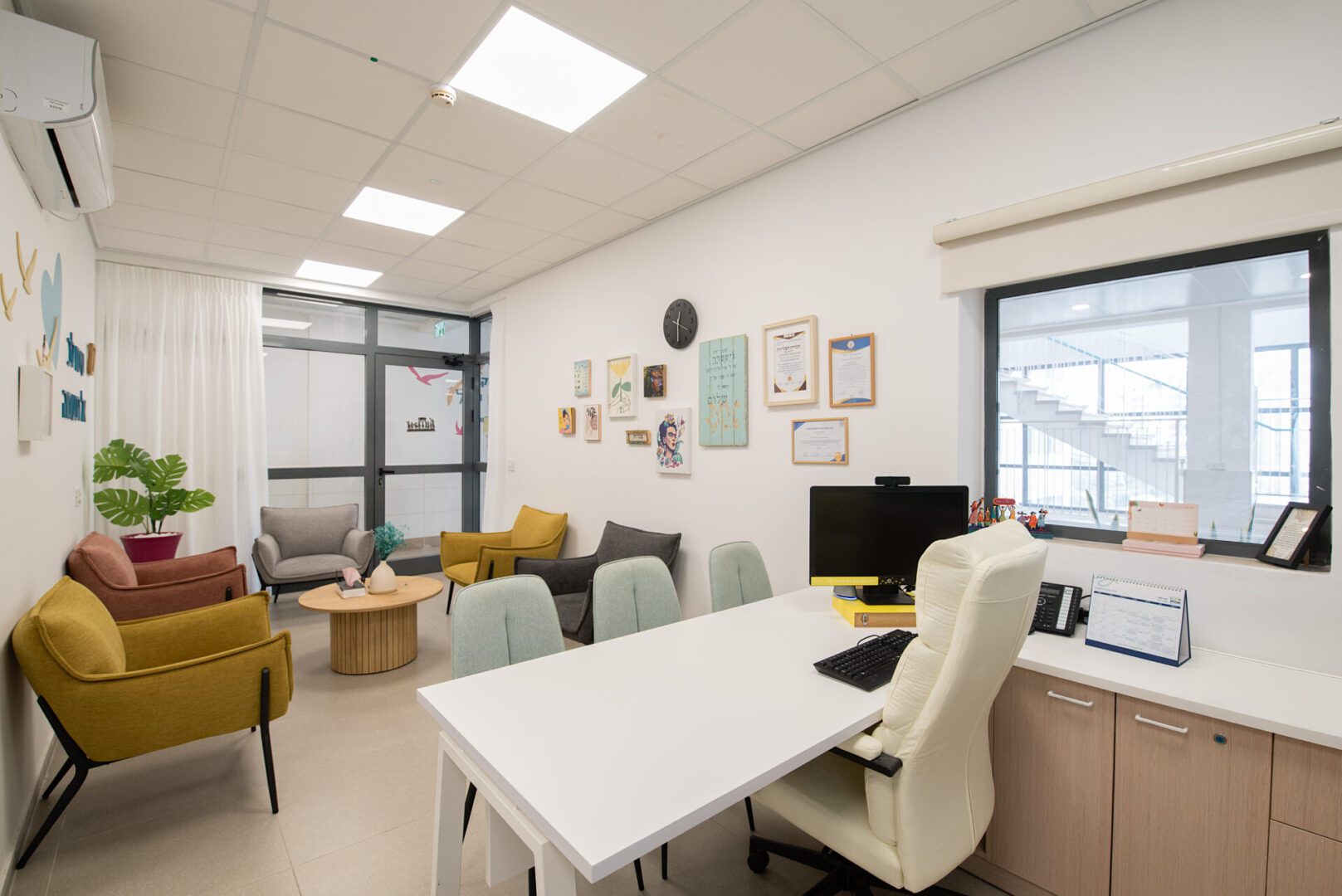 חדר המורים ומשרדי ההנהלה עוצבו כסביבת עבודה פונקציונלית ונעימה לשהייה שבין השיעורים, והספרייה קיבלה אופי שקט ומיוחד. התכנון כולו שם דגש על יצירת תחושת שייכות, חמימות וזרימה טבעית, תוך התאמה מדויקת לצרכי המקום והמשתמשות.